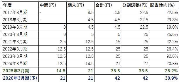 2026年3月期は、10周年記念配5円含む